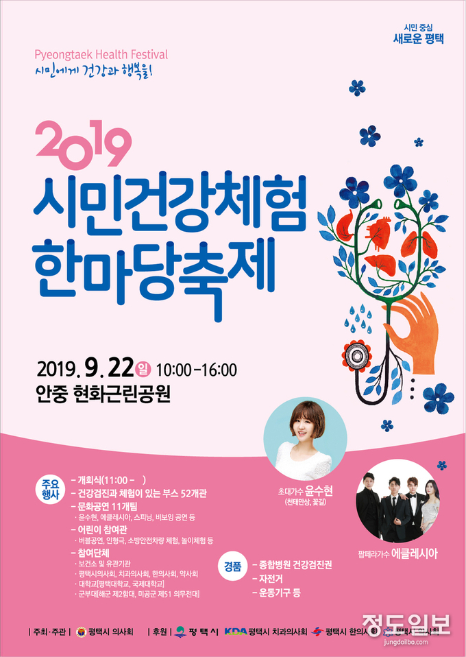 (정도일보) 평택시는 올해 6회째를 맞이하는 2019년 ‘시민건강체험 한마당 축제’를 9월 22일 오전10시부터 오후 4시까지 현화근린공원 에서 개최한다.