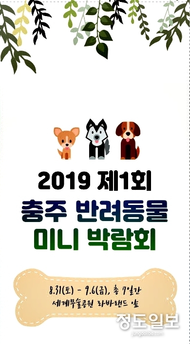 시는 오는 31일부터 9월 6일까지 ‘2019 제1회 충주 반려동물 미니박람회’가 충주세계무술공원 내 라바랜드 인근에서 개최된다고 밝혔다.