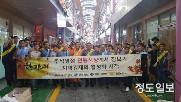 (정도일보) 경상북도 소방본부는 27일 추석명절을 맞이하여 울진전통시장에서 민생안정과 지역상권 활성화를 위한 전통시장 장보기 행사를 가졌다.