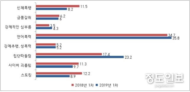 (정도일보) 경기도교육청이 28일 경기도 초·중·고등학교 학생을 대상으로 실시한 ‘2019년 1차 학교폭력 실태조사’결과를 발표했다.