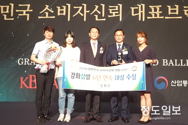 (정도일보) 강화군은 28일 그랜드힐튼 서울호텔에서 열린 ‘2019 대한민국 소비자신뢰 대표브랜드 대상’ 시상식에서 특산물 부문 6년 연속 대상을 수상했다.