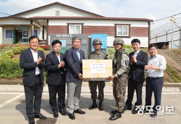 이날 오후 송한준 의장은 강원도 철원군 화살머리고지 감시초소를 현장 방문해 육군 제5사단장 이상철 소장을 격려하고 육군5사단 공병부대 장병 70여 명에게 빵과 음료 등 격려물품을 전달했다.