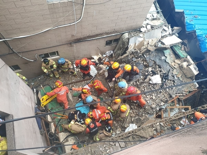 소방관계자는 "좁은 진입로 탓에 중장비를 투입이 어려워 수작업으로 구조를 진행해야 했다"면서 "무너진 단독주택은 지은 지 40년 된 노후 주택이었다"고 밝혔다.