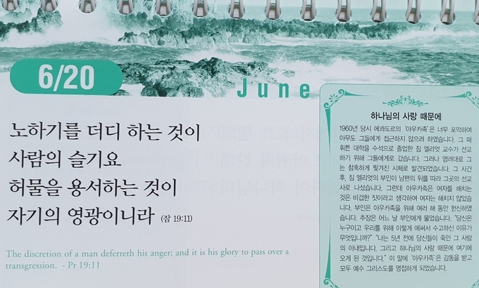 좋은 아침입니다. 오늘은 잠언 19장 11절 말씀을 읽으며 어제의 나를 반성합니다. 분노가 생겼을 때, 그것을 타인에게 거친 말이나 폭력 등의 악한 방법으로 표출하면 나와 타인, 그리고 하나님에게 범죄하는 행위입니다. 하지만 그 분노를 갈무리해서 새로운 삶이나 환경의 원동력으로 삼아 그 분노에 선한 에너지를 담는 것은 생활의 지혜입니다. 문득 삶의 충동과 에너지는 무한한 것이 아님을 깨닫습니다. 타인은 물론 자신의 허물을 능동적 에너지로 변환시키는 하나님의 평강의 은혜가 독자 여러분과 늘 함께 하시기를 기도합니다/김현섭 대표
