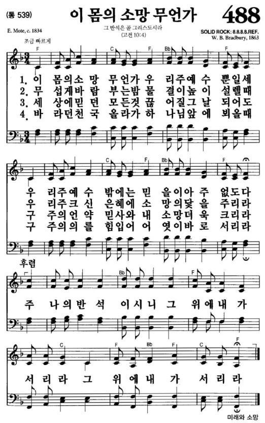미래와 소망을 담은 에드워드 모트 목사의 찬송가 488장 '이 몸의 소망 무언가'