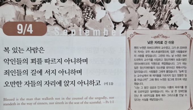 진리의 말씀인 성경은 한 구절만으로 사람을 변화시킵니다. 하나님의 영광을 세상에 보이게 만들 능력이 있습니다. 놀라운 능력과 지혜가 있는 성경 말씀을 나에게 주신 말씀으로 받고 매일 깊이 묵상하십시오. 오늘 나에게 주신 말씀이 무엇인지 성경을 통해 묵상합시다.