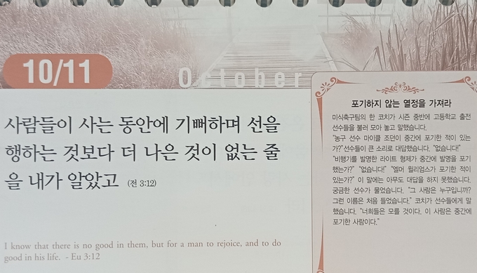 "나 여호와가 너를 항상 인도하여 마른 곳에서도 네 영혼을 만족케 하며 네 뼈를 견고케 하리니 너는 물 댄 동산 같겠고 물이 끊어지지 아니하는 샘 같을 것이라" -이사야서 58장11절
