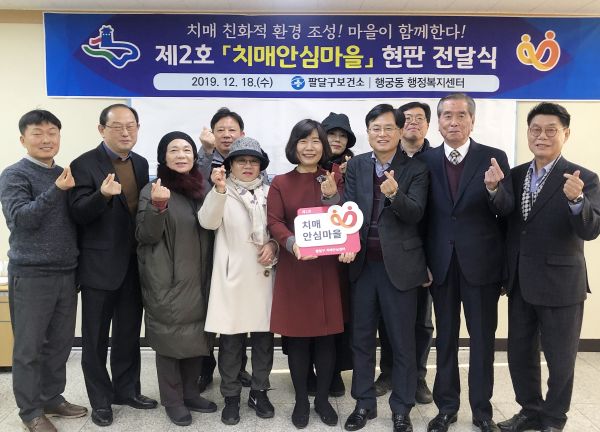 수원시 팔달구보건소는 18일 오전 11시 행궁동 행정복지센터 주민자치회의실에서 ‘팔달구 제2호 치매안심마을’ 현판 전달식을 열었다.