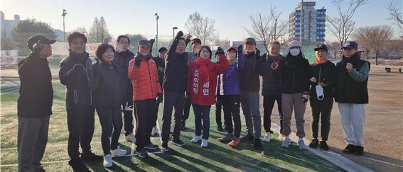 동호회 회원 30여명과 게임을 즐긴 김 예비후보는 회원들이 준비한 따뜻한 차를 함께 마시며 “체육행사를 위한 시설 지원과 건강프로그램 활성화 등 동호회 지원을 위해 노력하겠다”고 약속했다.