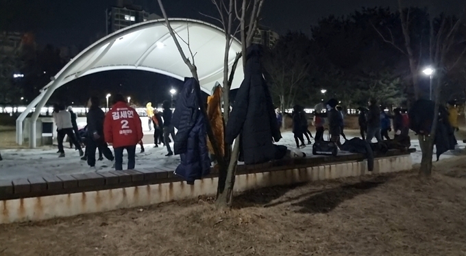 김 예비후보는 이어 같은 공원에서 제기를 즐기고 있는 서호제기동호회 회원 30여명을 만났다. 근데 우리가 흔히 알고 있는 제기와는 조금 차이가 있었다.