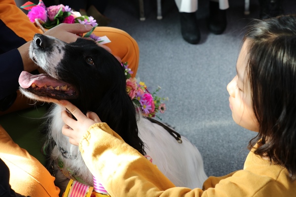 이날 은퇴식은 수안의 재난현장 활약상을 소개한 영상을 시작으로 담당 핸들러의 꽃다발 증정식, 분양대상자 전달, 기념촬영 순으로 진행됐다.