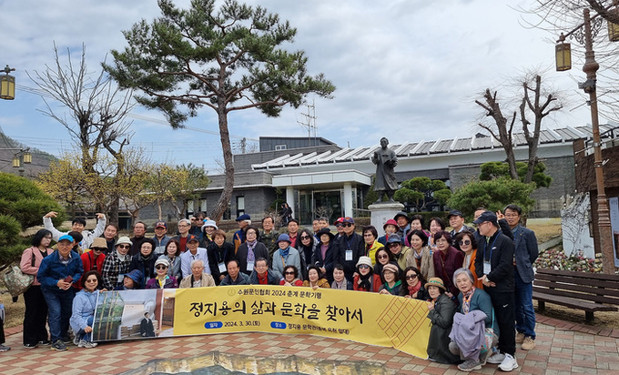 지난 달 30일 진행된 이번 문학기행은 협회 회원 약 68명이 참여했으며, 오전 8시 버스 2대로 화성행궁 광장에서 출발해 충복 옥천군에 있는 목적지에 도착 정지용의 생가와 문학관을 관람하는 시간을 가졌다.