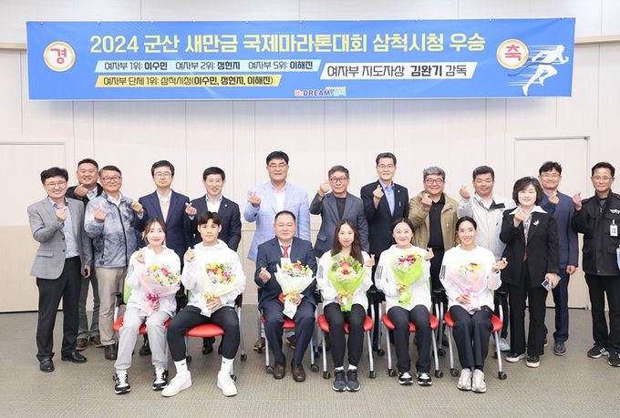삼척시는 4월 16일 오후 4시 시민회의장에서 박상수 삼척시장을 비롯하여 주요 내빈이 참석한 가운데 ‘2024년 군산 새만금 국제마라톤 대회’에서 우수한 성적을 거두고 돌아온 삼척시청 육상팀을 위해 환영식을 열고 꽃다발을 전달하는 등 감독과 선수들을 격려했다.