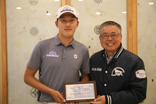 선수들을 대표해 김백준은 “올 시즌부터 KPGA 투어에서 활동할 수 있게 된 것만으로도 보람찬데 이렇게 첫 공식 상금을 기념할 수 있는 액자를 받아 ‘루키’로서 뿌듯하고 감동”이라는 소감을 전했다.