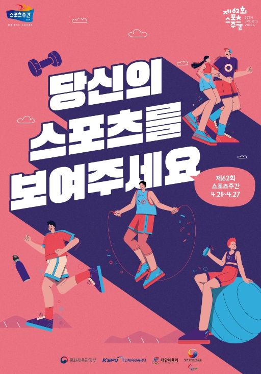 (정도일보) 문화체육관광부는 4월 21일부터 27일까지 정부 부처와 지자체를 비롯해 국민체육진흥공단, 대한체육회 등 체육단체와 함께 ‘제62회 스포츠주간’을 시행한다.