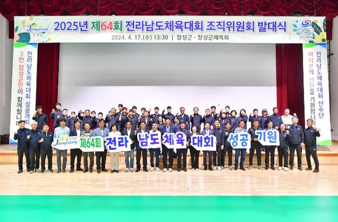 군은 17일 장성군민회관에서 유관기관‧사회단체장, 언론인, 체육회 임원 등으로 구성된 조직위원과 체전 참가 선수단 등 200여 명이 함께한 가운데 ‘제64회 전라남도체육대회 조직위원회 발대식’을 가졌다고 전했다.