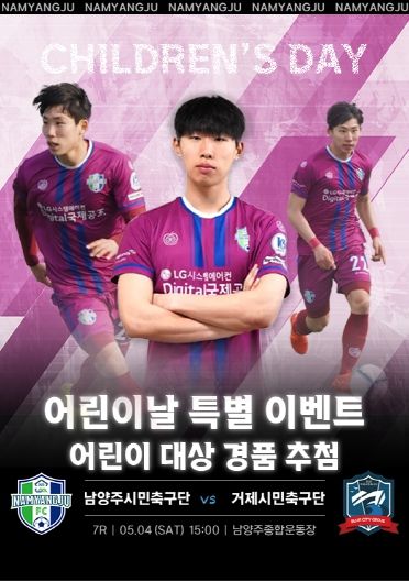 남양주FC는 가정의 달을 맞아 오는 4일 열리는 7라운드 홈경기에서 △선수단 사인회 △가족 폴라로이드 촬영 △어린이 대상 경품 추첨 등 온 가족이 함께 즐길 수 있는 다양한 행사와 팬서비스를 제공할 예정이다.