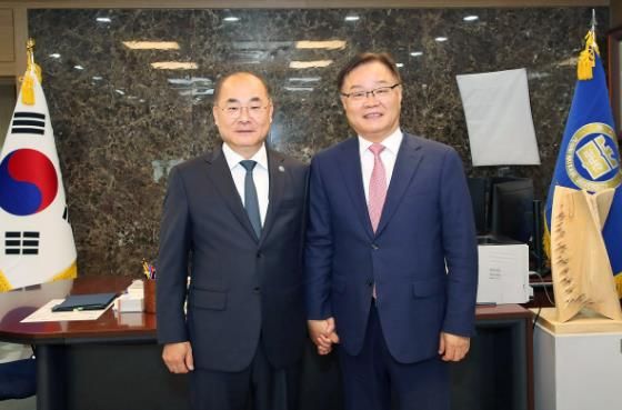 왼쪽부터 부산대학교 제22대 총장 최재원, 홍남표 창원특례시장