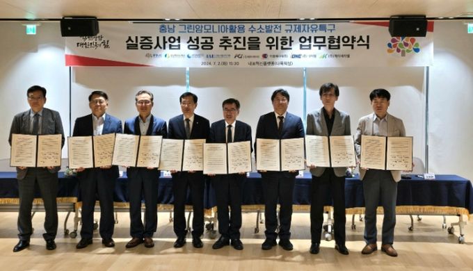 ‘충남 그린암모니아 활용 수소발전 실증사업’은 향후 무탄소에너지원 및 그린 수소의 캐리어로 각광받고 있는 암모니아를 활용한 사업으로 충남도의 ‘탄소중립경제특별도’ 실현을 위해 규제자유특구로 기획됐다.