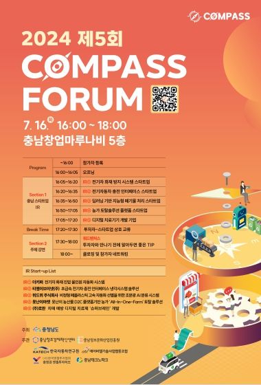 (정도일보) 충남창조경제혁신센터는 오는 7월 16일 오후 4시 충남창업마루나비에서 ‘제5회 컴퍼스 포럼(COMPASS Forum)’을 개최한다.
