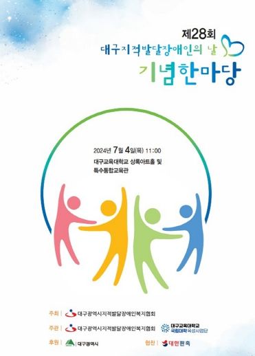 (정도일보) 대구광역시와 ㈔대구광역시지적발달장애인복지협회는 오는 2024년 7월 4일 대구교육대학교 상록문화관에서 ‘제28회 지적발달장애인의 날 기념한마당’을 개최한다.