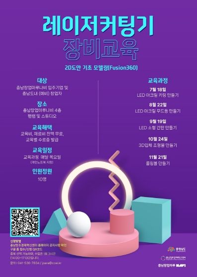모든 교육은 재료비 포함하여 전액 무료로 진행되며, 충청남도에 거주/재학/근무 중이라면 누구나 참여 가능하다.