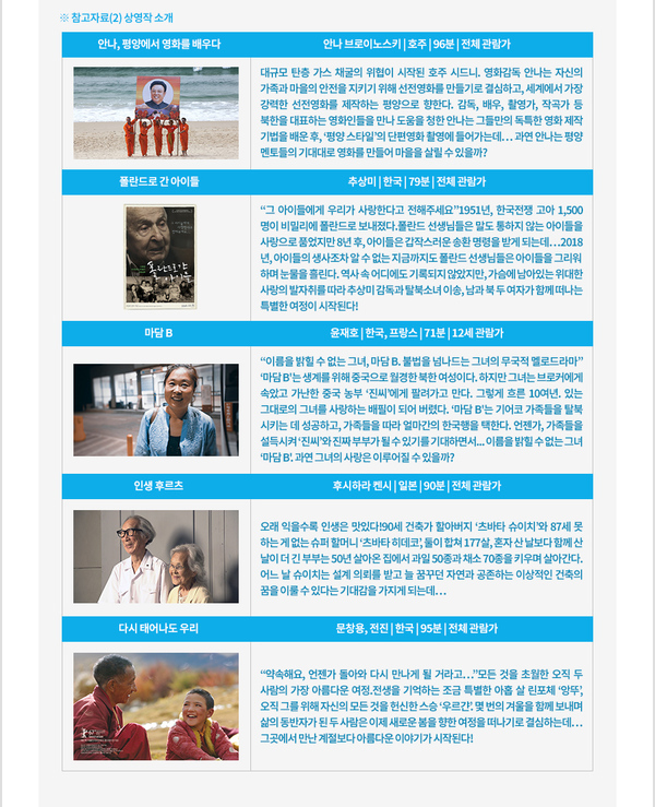 이번 지역 정기상영회 프로그램은 지역관객이 가까운 동네에서 우수한 다큐멘터리 감상을 할 수 있을 뿐 아니라, 다큐멘터리 상영기회를 확대한다는 점에서 의미가 있다.