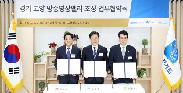 [경기=김현섭 기자] 24일 오전 경기도청 상황실에서 경기도(도지사 이재명)와 고양시(시장 이재준), 경기도시공사(사장 이헌욱)가 ‘경기 고양 방송영상밸리 조성 업무협약’을 체결하고, 사업의 성공적인 추진을 통해 3만1천여개의 일자리 창출과 4조2천억여 원 규모의 생산유발 효과를 거둘 수 있도록 함께 노력해 나가기로 했다.