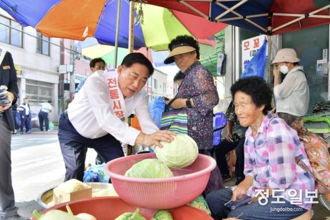 지난 추석 황룡전통시장을 찾은 김한종 군수