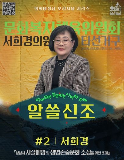(정도일보) 성남시의회는 ‘알쓸신조-서희경 의원 편’ 영상을 26일 17시 시의회 공식 SNS에 게시한다.