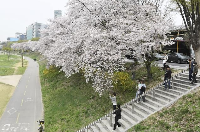 성남지역 벚꽃은 오는 4월 5일 전후로 절정에 이를 것으로 전망된다.