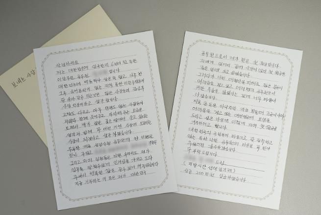 “대한민국의 국민들이 잘 정착하고 있는 북한이탈주민 공무원의 마음을 꼭 받아주셨으면 감사하겠다”는 말로 편지를 마무리했다.