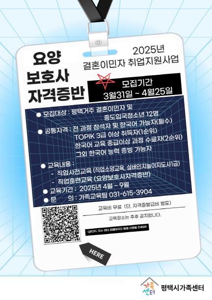평택시가족센터, 요양보호사 자격증반 참여자 모집