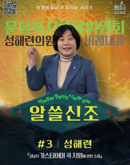(정도일보) 성남시의회는 ‘알쓸신조-성해련 의원 편’ 영상을 9일 17시 시의회 공식 SNS에 게시한다.