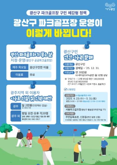 (정도일보) 광주 광산구는 공공파크골프장을 시민 친화적 시설로 활성화하기 위해 직영으로 전환하고, 시민 혜택을 강화하는 다양한 체감형 정책을 추진한다고 밝혔다.