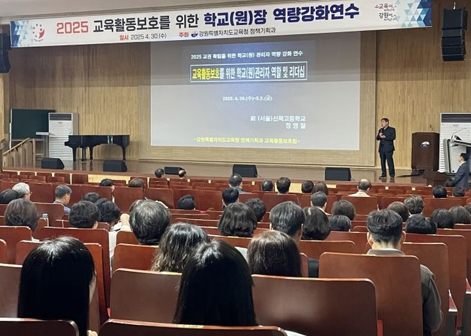(정도일보) 강원특별자치도교육청은 4월 30일부터 5월 2일까지 3일간 강원특별자치도교육청교육연수원, 강원특별자치도유아교육원, 강원특별자치도교육청에서 도내 초·중·고·특수학교 교장 및 유치원 원장을 대상으로 ‘2025 교육활동보호를 위한 학교(원)장 역량강화 연수’를 실시했다.
