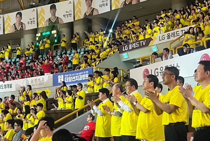 (정도일보) 창원특례시는 지난 9일 창원체육관에서 열린 2024~2025 프로농구 챔피언 결정전 3차전에서 장금용 창원특례시장 권한대행이 현장 응원을 펼쳤다고 밝혔다.