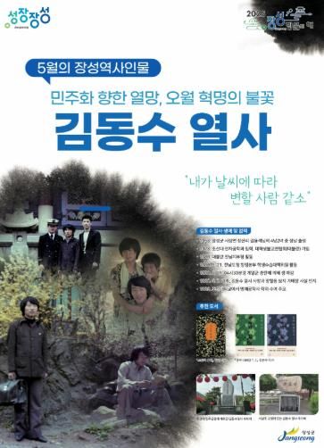 장성군은 오는 14일 장성문화예술회관 소공연장에서 제45주년 5‧18민주화운동 기념식을 갖고 김동수 열사를 추모한다.