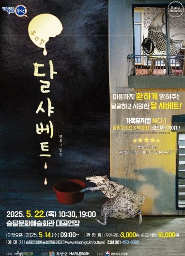 (정도일보) 전남 무안군은 오는 22일 목요일 오전 10시 30분과 오후 7시, 두 차례에 걸쳐 승달문화예술회관 대공연장에서 가족뮤지컬 ‘달 샤베트’를 선보인다.