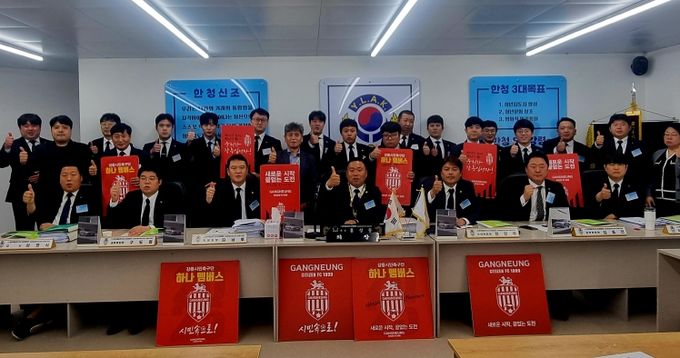 홍성동 한청지도자연합회 강릉시지회장은 “오늘 발대식을 통해 강릉시민축구단 홈 경기에 한청에서도 모든 회원들이 함께 힘을 모아 적극응원하겠다.”라고 말했다.