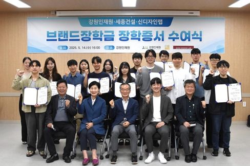 2(정도일보) 강원인재원은 5월 14일 오후 4시, 강원인재원 2층 대회의실에서 2025년 강원·세종건설·신디자인랩 '브랜드장학금' 수여식을 개최하고, 올해 선발된 장학생 16명에게 장학증서를 전달했다.