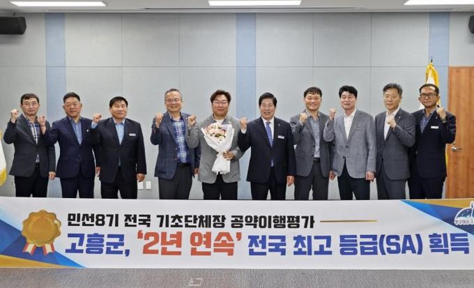 (정도일보) 고흥군은 한국매니페스토실천본부에서 발표한 ‘2025년 민선 8기 전국 기초단체장 공약이행 및 정보공개평가’에서 공약이행 평가에서 지난해에 이어 ‘2년 연속’ 전국 최고 등급(SA)을 획득하는 쾌거를 이뤘다고 16일 밝혔다.