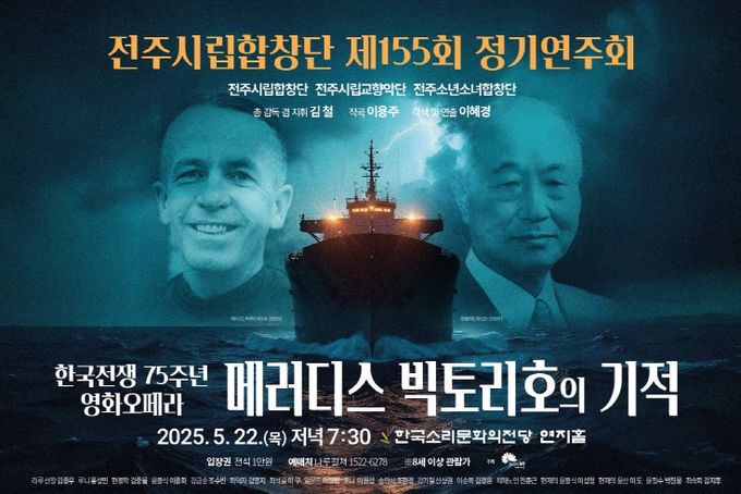 전주시립합창단은 오는 22일 오후 7시 30분, 한국소리문화의전당 연지홀에서 ‘제155회 정기연주회’인 영화오페라 ‘메러디스 빅토리호의 기적’ 공연을 펼친다.