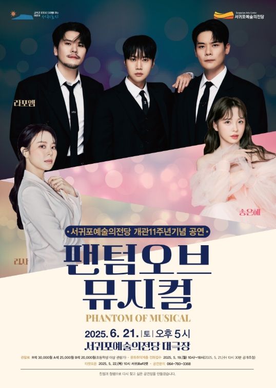 (정도일보) 서귀포예술의전당은 개관 11주년을 맞아 오는 6월 21일 오후 5시, 서귀포예술의전당 대극장에서 기획공연 '팬텀 오브 뮤지컬'을 선보인다고 밝혔다.