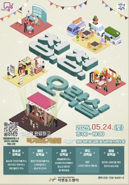 (정도일보) 성남시청소년청년재단 서현유스센터는 5월 24일, 오후 3시부터 7시까지 분당 양영어린이공원과 서현유스센터 일대에서 ‘청·청 오락실’을 개최한다. 이번 축제는 청소년과 청년이 직접 기획하고 운영하는 지역 축제로, 주민 누구나 참여할 수 있다.