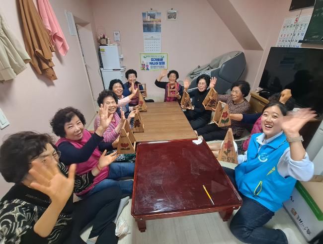 프로그램에 참여한 한 어르신은 “내가 좋아하는 장미꽃 한송이 노래에 맞춰 박수치고 직접 그려서 만든 예쁜 화장지 걸이도 만족스럽다, 매일 경로당에 와 주었으면 좋겠다”고 전했다.