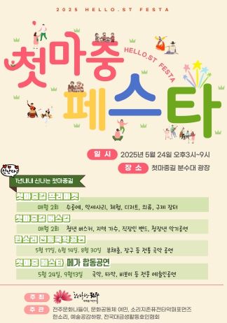 김문기 전주시 광역도시기반조성실장은 “첫마중길이 단순한 보행 공간을 넘어 누구나 즐기고 머물고 싶은 열린 문화공간으로 거듭날 수 있도록 이번 행사를 준비했다”면서 “다양한 공연과 체험이 함께하는 복합문화공간에서 시민과 방문객 모두가 즐겁고 의미 있는 시간을 보내길 바란다”고 말했다.