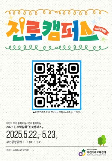 (정도일보) 부천여성청소년재단이 운영하는 부천미래교육센터는 오는 22일과 23일 이틀 동안 부천중앙공원에서 2025년 진로박람회 ‘진로캠퍼스’를 개최한다.