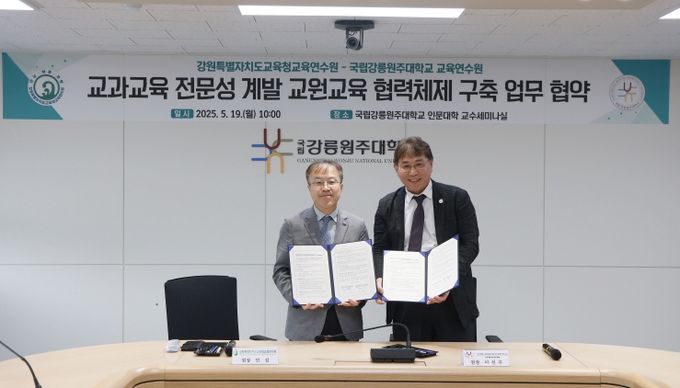 (정도일보) 강원특별자치도교육청교육연수원은 19일 국립강릉원주대학교 교육연수원과'교과교육 전문성 계발 교원교육 협력체제 구축'을 위한 업무협약을 체결했다.
