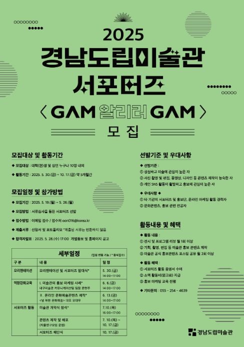 2025 경남도립미술관 서포터즈 'GAM 알리러 GAM' 모집 포스터